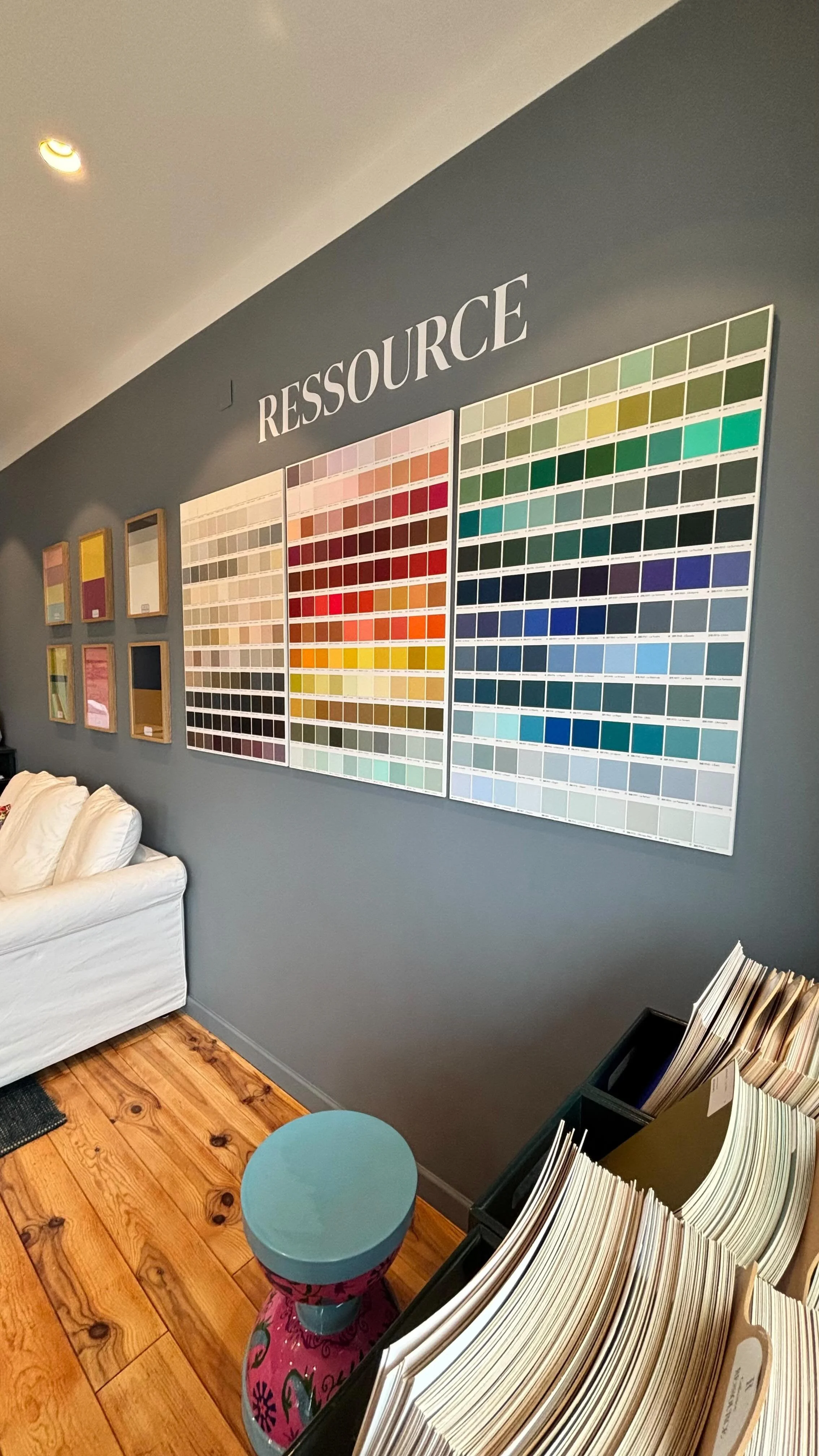 Je vous conseille également sur le blanc ou les teintes neutres qui s’harmoniseront le mieux à votre projet. Je dispose au showroom de l’ensemble des échantillons des peintures, chaux & papier peint RESSOURCEEtant régulièrement en visite sur les chantiers ou en conseil à domicile. pour votre accueil et une écoute dédiée à votre projet, je vous reçois au showroom sur RDV. (gratuit).